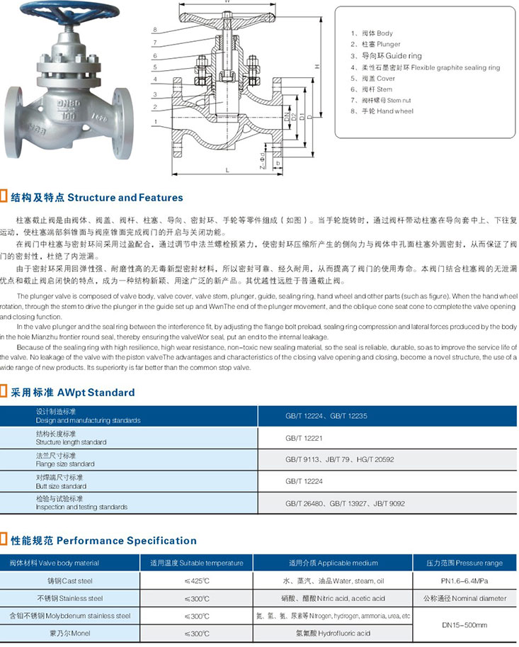 UJ41H拄塞截止閥UJ41H拄塞截止閥